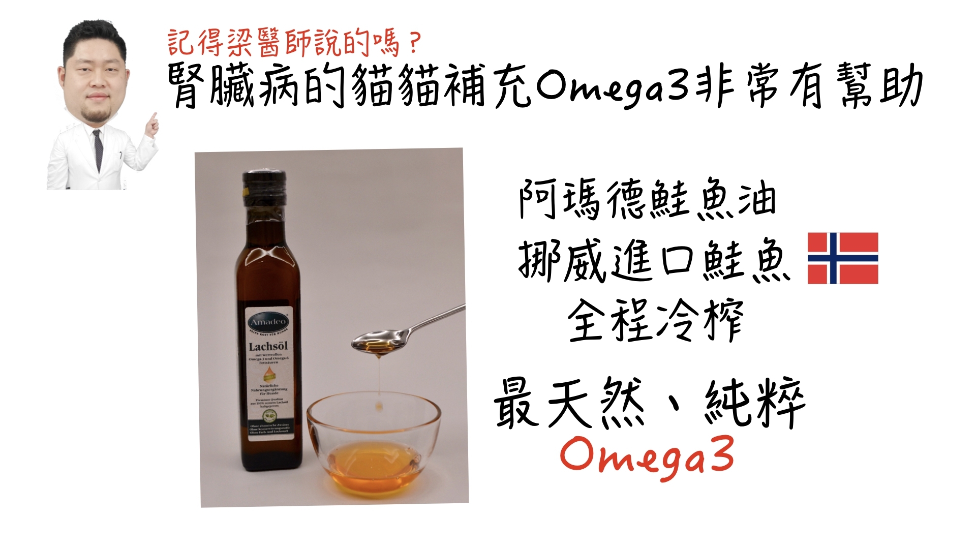 而許多研究已經證實,鮭魚油的Omega3不飽和脂肪酸,對於貓咪腎臟是很有幫助的阿瑪德的貓皇腎病護衛軍,就是要幫助各位貓奴們,不再為貓貓的腎病所苦。趕快買回去孝敬主子!